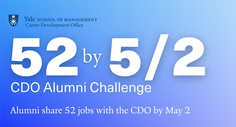 The Yale SOM CDO is excited to launch a new alumni initiative: The 52 by 5/2 Challenge! The goal is for alumni to share with the CDO 52+ roles for current Yale SOM students and alumni by May 2, 2026. …